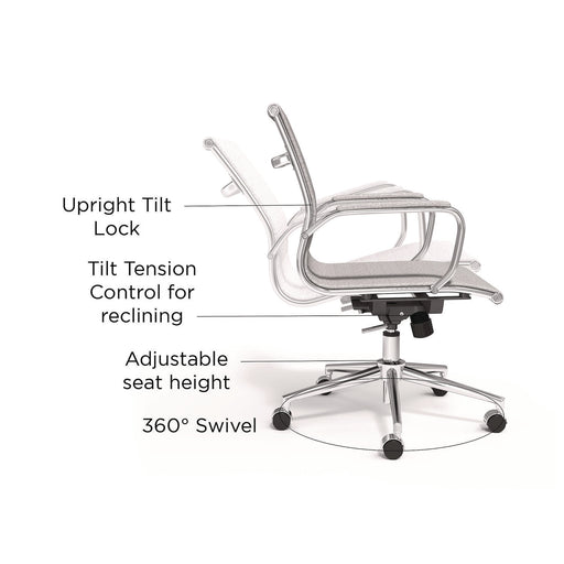 Wessex Ergonomic Fabric Mesh Swivel Task Chair, Supports Up to 275 lb, 17.09 to 20.83 Seat Height, Gray Seat/Back, White Base