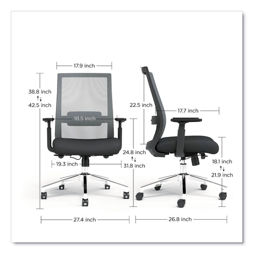 Alera Elusion Series Mesh Mid-Back Multifunction Chair, Supports Up to 275 lb, 17.7" to 21.4" Seat Height, Black