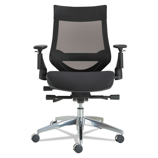Alera EB-W Series Pivot Arm Multifunction Mesh Chair, Supports 275 lb, 18.62" to 22.32" Seat, Black Seat/Back, Aluminum Base