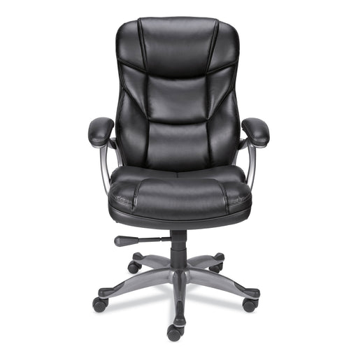Alera Eddleston Leather Manager Chair, Supports Up to 275 lb, Black Seat/Back, Chrome Base